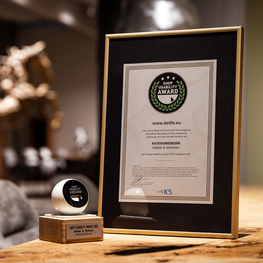 2022 gewinnen wir zum 2. Mal den SHOP USABILITY AWARD in der Kategorie Möbel